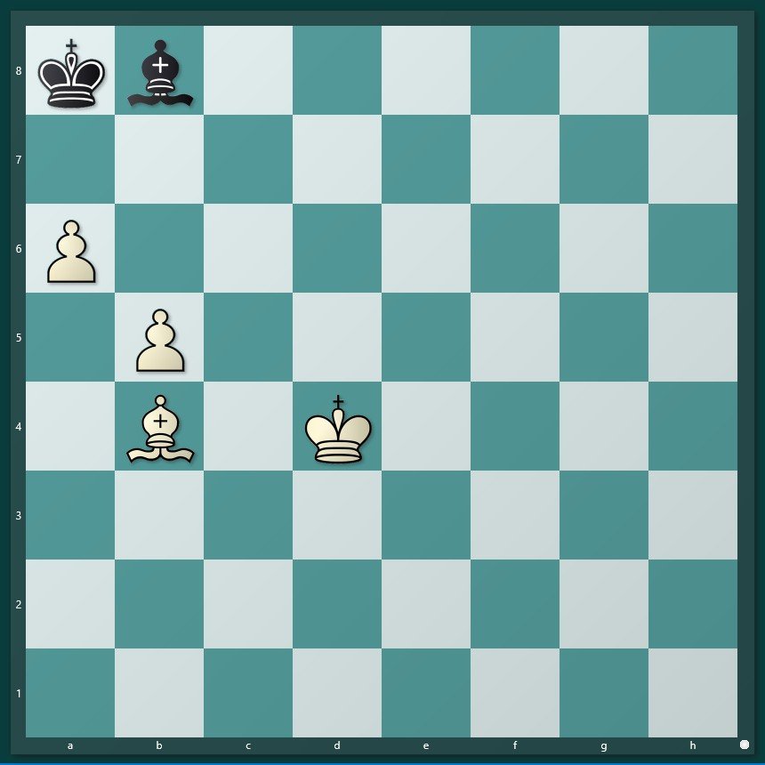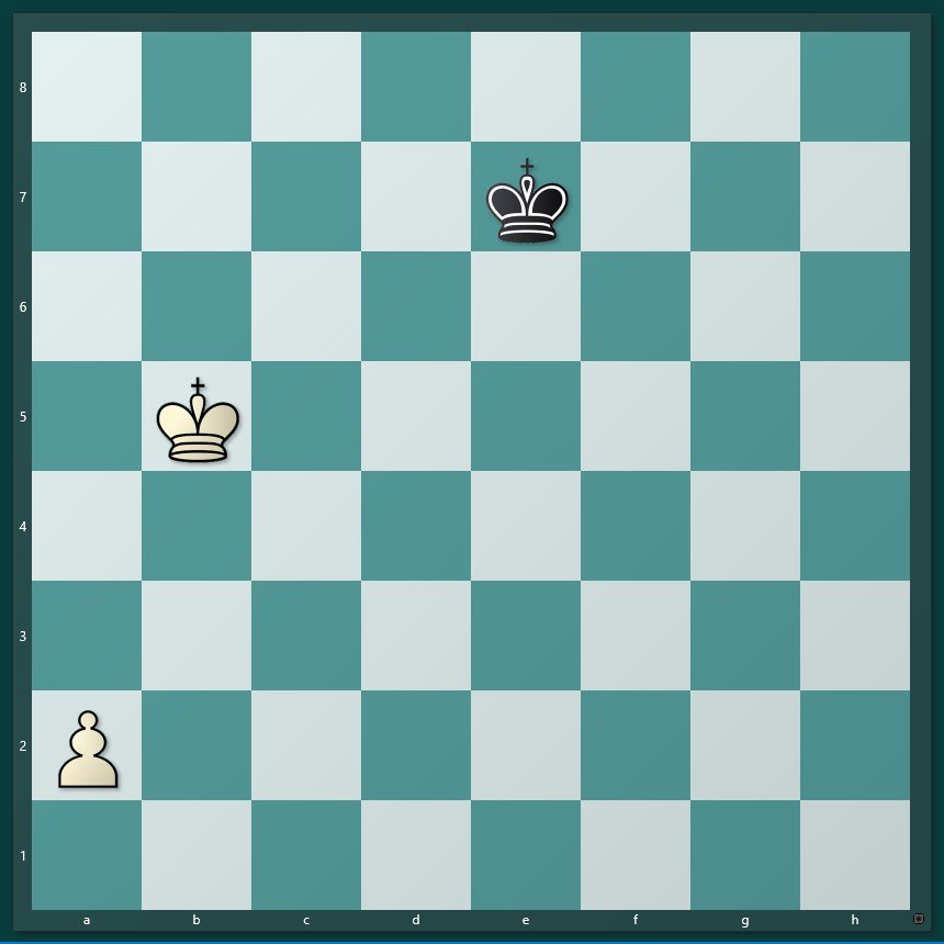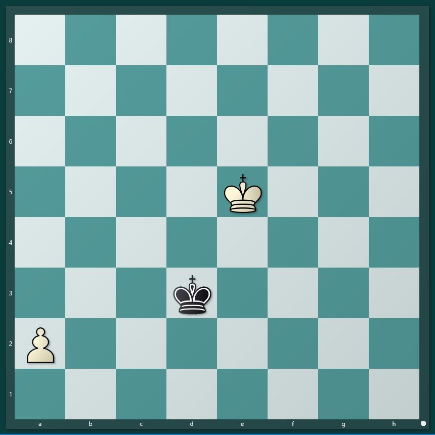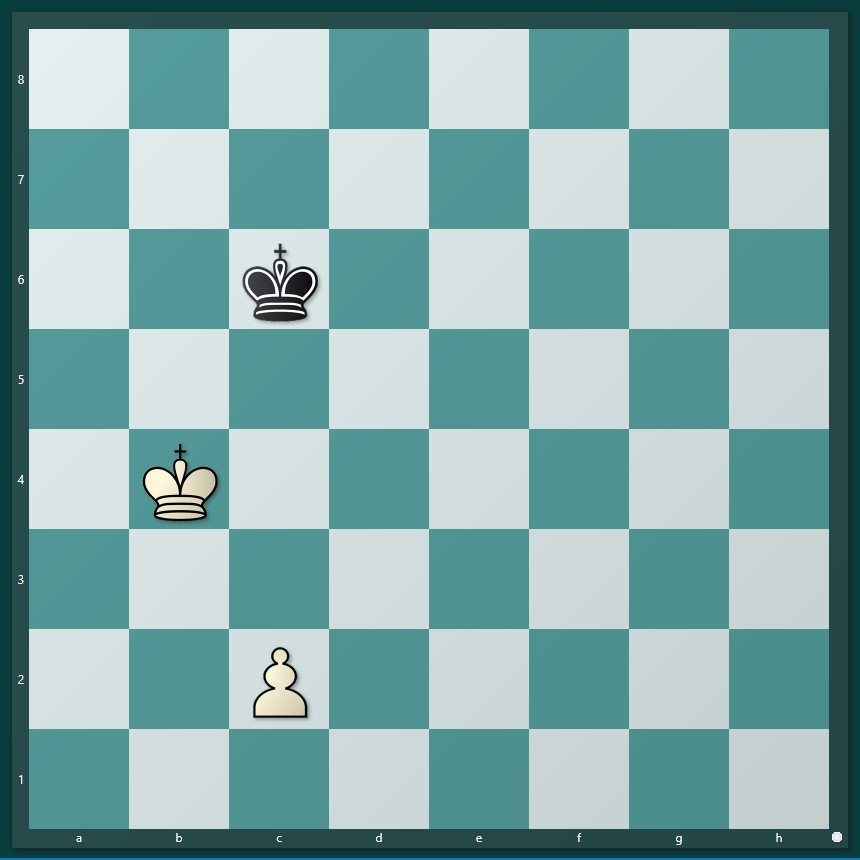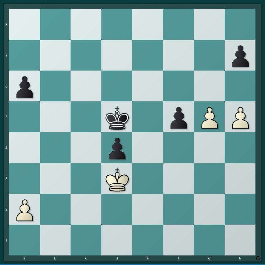 De Koning is belangrijk in het eindspel. Een voorbeeld is (zwart aan zet):